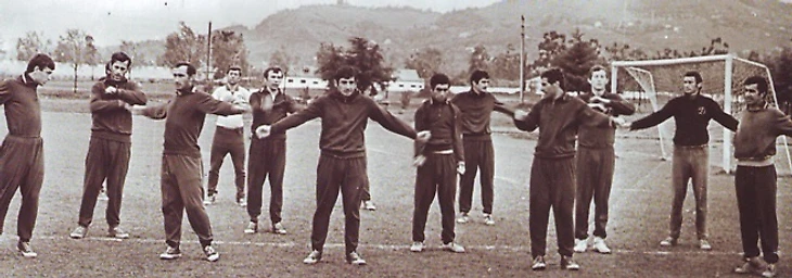 В 50-е годы в Абхазии число футбольных команд увеличилось до 40. Именно в эти годы выросла плеяда мастеров кожаного мяча, которыми пополнялись ведущие команды СССР: это воспитанники абхазского футбола В.Маргания, Н.Дзяпшипа, Ю.Грамматикопуло, В.Баркая, Н.Симонян и др.