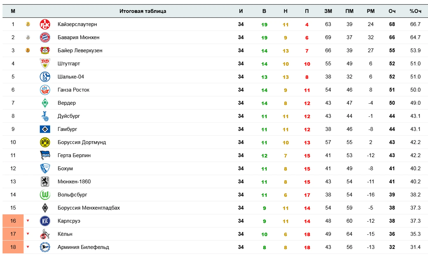 1. «Кайзерслаутерн» — единственный клуб Германии, который выиграл чемпионат на следующий сезон, после выхода из Второй Бундеслиги.