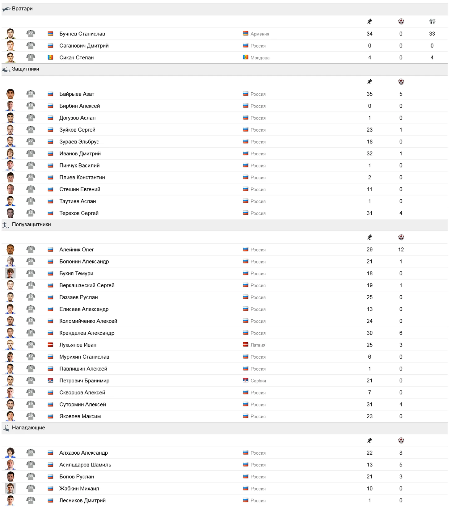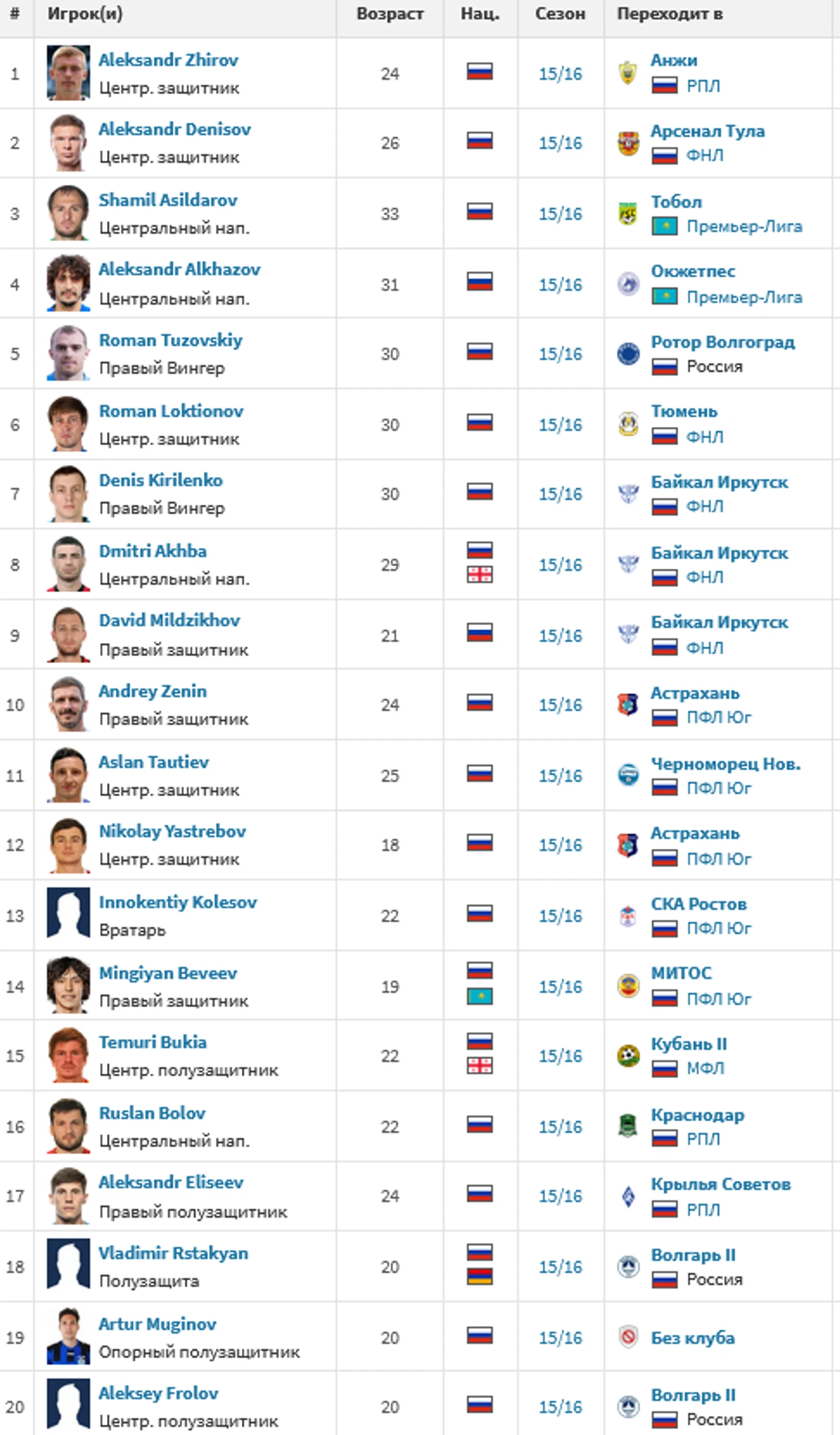 Вообще футболисты команды в то время были участниками международных матчей. Р. Болов защищал цвета молодёжной сборной России на отборочном этапе Евро-2015. С. Зуйков и Т. Букия в составе сборной ФНЛ сыграли с итальянской Serie «B». Т. Букия в составе молодёжной сборной России принял участие в «Кубке Содружества-2015», где был капитаном команды и получил приз как лучший игрок одного из матчей.
