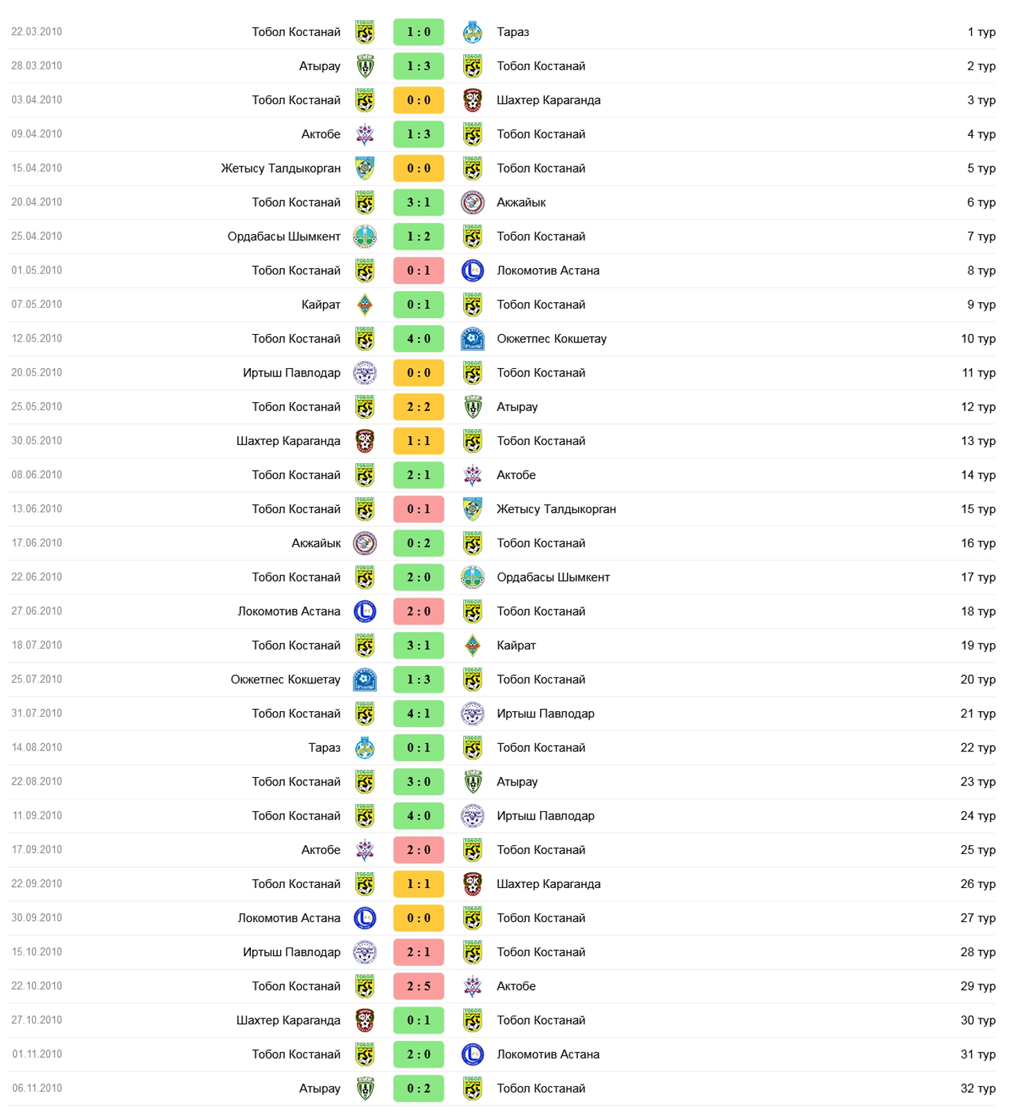В сезоне 2008 после 30 туров «Тобол» и «Актобе» имели по 67 очков. По регламенту был назначен «золотой матч», который проходил в Алматы. Основное время закончилось 1:1. А в серии пенальти игроки «Актобе» оказались более удачливыми 5:3. Таким образом, костанайцы вновь остановились в шаге от чемпионства.