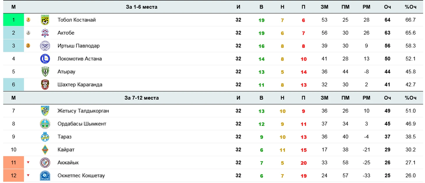А вот в борьбе за 1-6 места у команды случился провал в середине турнира, С 25 тура: три поражения и две ничьи. Но под конец клуб смог одержать три победы и стал всё-таки первым в чемпионате, опередив всего на один балл «Актобе»!