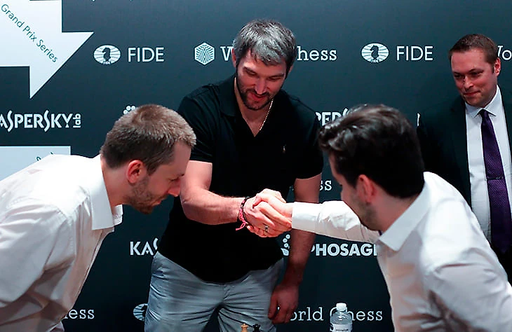 В среду хоккеист появился в финале этапа Гран-при ФИДЕ, где на тай-брейке выявляли чемпиона российские гроссмейстеры Александр Грищук и Ян Непомнящий. Овечкин сделал первый ход в матче (как символическое вбрасывание в хоккее и символический удар перед матчем в футболе) – белыми фигурами Грищука он неуверенно переставил пешку с e2 на e4.
