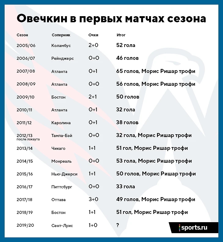 Бывали сезоны, которые Овечкин начинал и лучше, и хуже, но в 6 из 7 последних случаев он все равно брал приз лучшему снайперу регулярки. Поход за девятым полтинником в карьере начался.