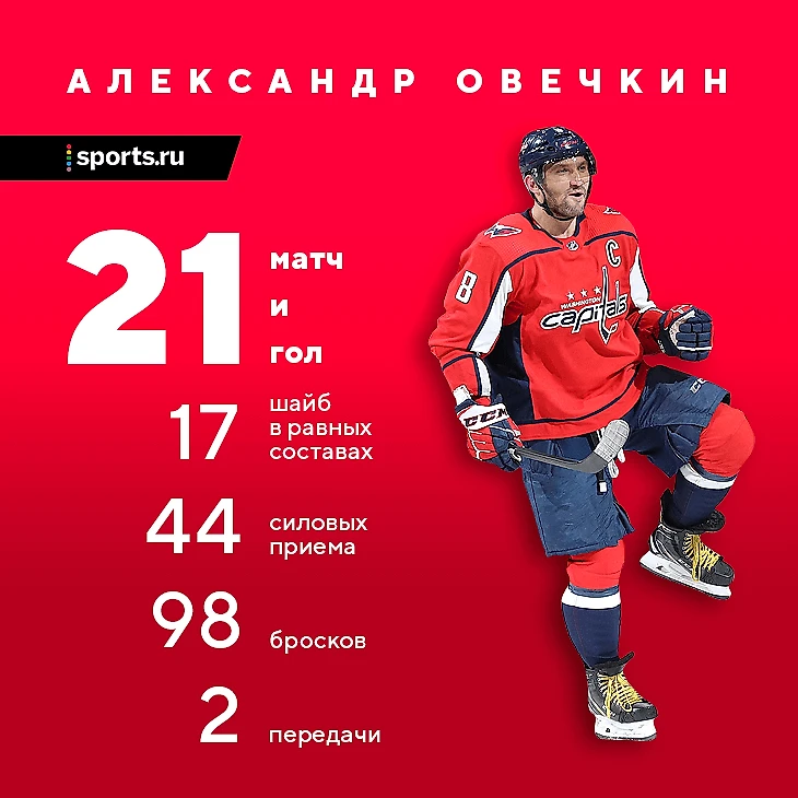 У Овечкина, помимо дубля, есть еще одно достижение – он обошел Яромира Ягра по голам на выезде и вышел на третье место в истории. Выше только Стив Айзерман и Уэйн Гретцки. Еще один интересный факт: в прошлом сезоне Овечкин забил свой 45-й гол 1 марта. В этом году он снова добрался до этой отметки в первый день весны. И совсем космические цифры – за последние два месяца в 21 матче у Овечкина ровно 21 гол. Фантастика!