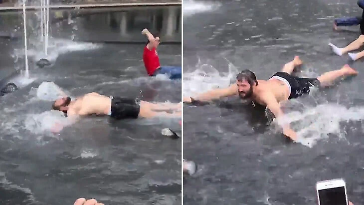 – Отжимания [в фонтане]. Нельзя не тренироваться. Хэштег #безвыходных