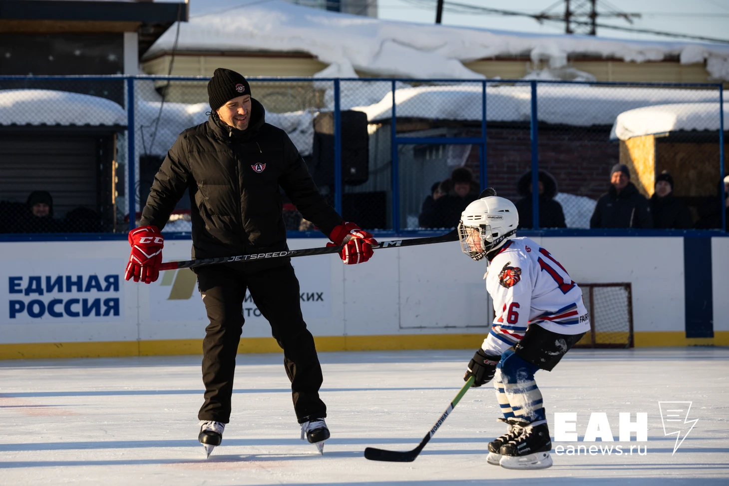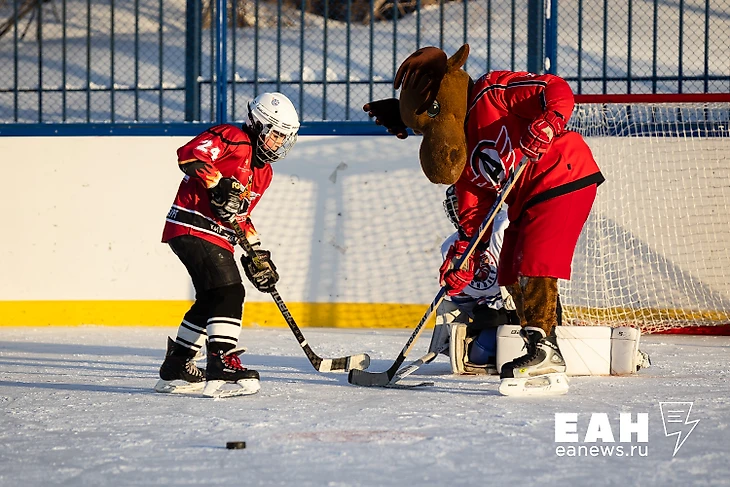 Погонять шайбу с юными спортсменами на открытый ледовый корт вышли форвард хоккейного клуба «Автомобилист» Алексей Макеев и легендарный хоккеист Павел Дацюк, который после завершения игровой карьеры занимается развитием молодежи в системе уральского клуба. Именно он стал идейным вдохновителем мероприятия. Помогал звездным спортсменам задорный маскот, лось Автик.