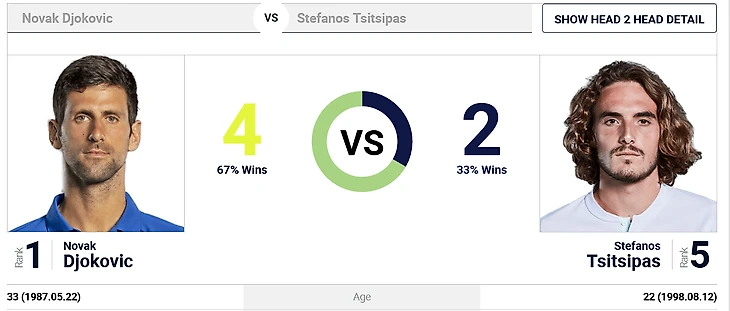 Стефанос: “[Djokovic] has won here a lot of times. I am just expecting to go out there [and] give my best performance,” Tsitsipas said. “He can play on all surfaces. We played each other at Roland Garros. I see this as an opportunity for me to do something better this time. I hope to be able to play the same tennis that I have been playing so far and be a challenge for him.”