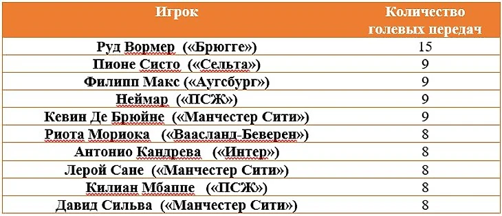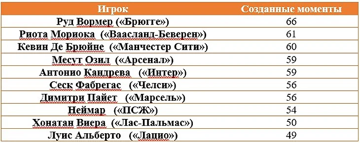 А вот другое исследование, проведенное Opta в конце декабря – на этот раз, посвященное количеству созданных голевых шансов для партнеров. За основу были взяты топ-5 европейских лиг + Лига Жюпиле. Да-да, и здесь голландец из «Брюгге» всех оставил с носом – 66 созданных моментов, лучший показатель во всей Европе.