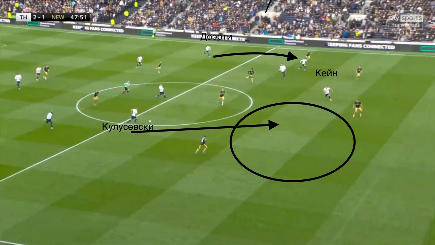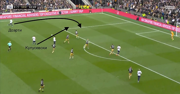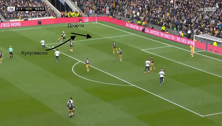 Вторая половина стартовала намного лучше первой. На 48 минуте после отличной атаки и no-touch паса от Сона забил Доэрти, проделавший сумасшедший объём работы. Вот как это выглядело:
