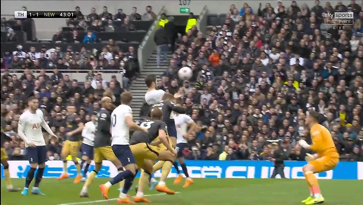 Правда, ответ Тоттенхэма ждать долго не пришлось. Уже через 4 минуты после подачи углового Дэвис забил головой с навеса Сона. Бена не удержали 2 защитника.