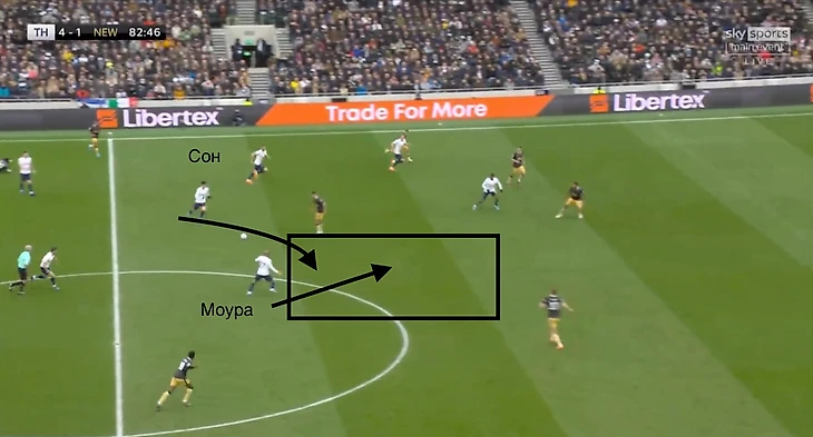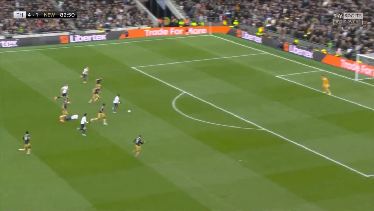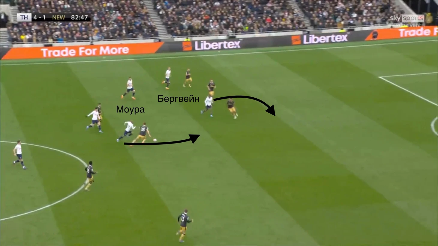 Затем, у Сона был шанс оформить дубль, но кореец пробил мимо ворот. На 74 минуте произошла двойная замена. Вместо Бентанкура и Кулусевски вышли Уинкс и Моура. Позже, Конте поменял Эмерсона на Бергвейна. На 82 минуте голландец приговорил «сорок», забив после потери Ньюкаслом мяча в атаке. Здесь стоит отметить и хороший пас от Моуры.