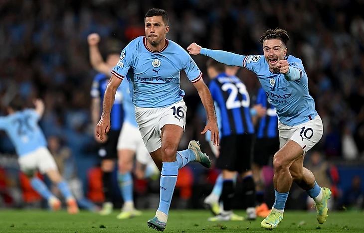 На 68 минуте мы дожидаемся первого и единственного гола в матче. Его забивает Родри на 68 минуте, подключаясь вторым темпом к атаке. Гениальный пас Аканджи отрезал несколько защитников Интера и вывел на предголевую позицию Бернарду Силву. Вся защита и полузащита Интера вжалась в штрафную, закрывая ворота и перехватывая возможные направления паса. Но удачный отскок мяча к Родри и счёт 1:0.