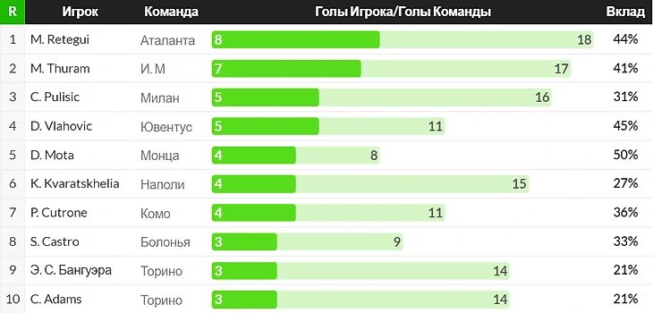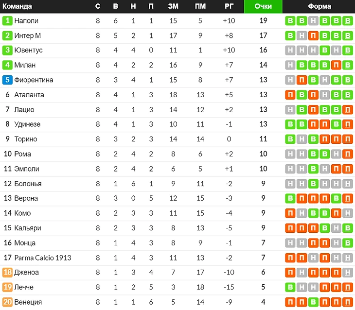Казалось, что у бергамасков очень тяжёлый старт, но они уже занимают 6 место в чемпионате, вплотную подобравшись к зоне ЛЧ. Браво, Гасперини!