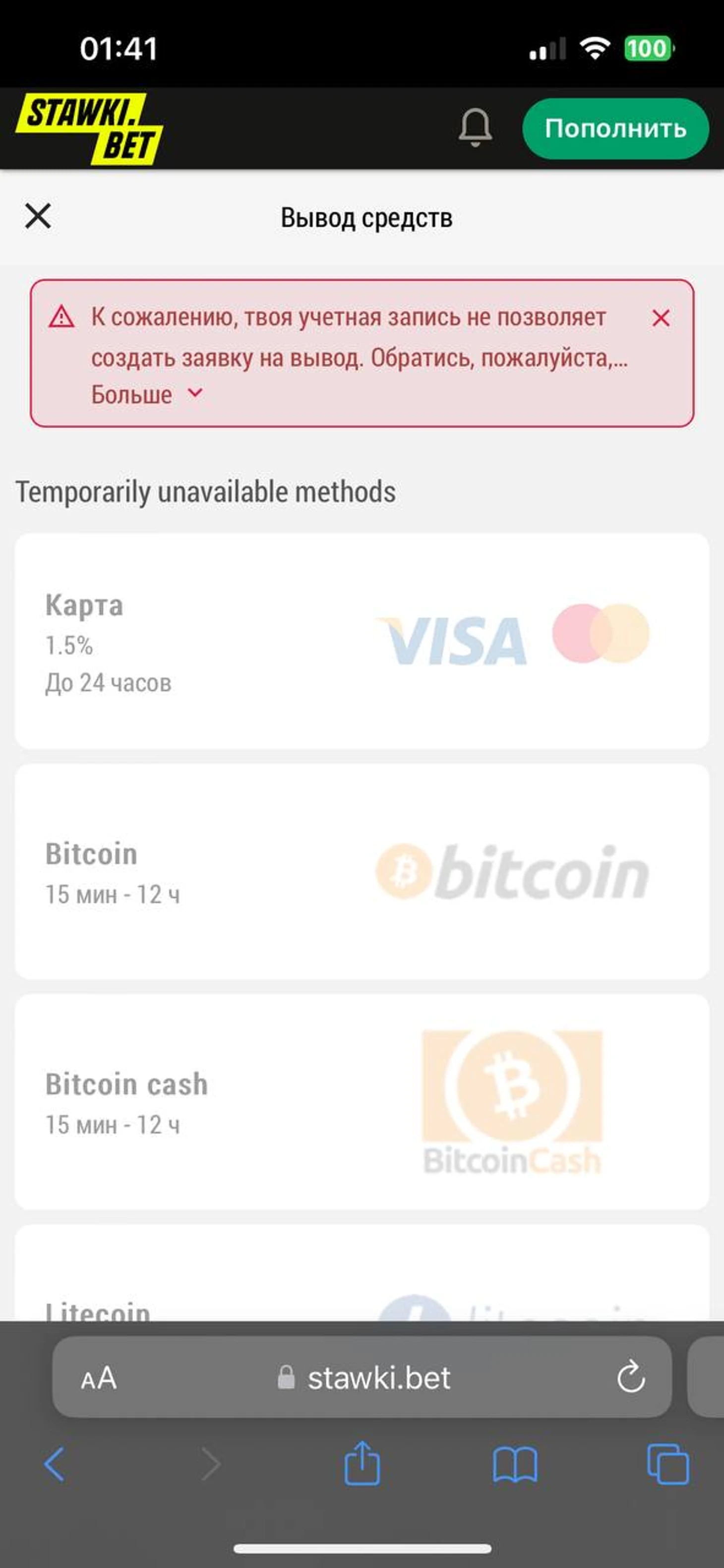 Загружу скриншоты с подтверждением прошлых ставок. Что бы не быть голословным. Ну и скриншот того, что уже и на новом сайте-клоне PariMatcha - SyawkiBet уже заблочен вывод!) Там скоро начинается баскетбол. Уваерен, что будет снова весело)