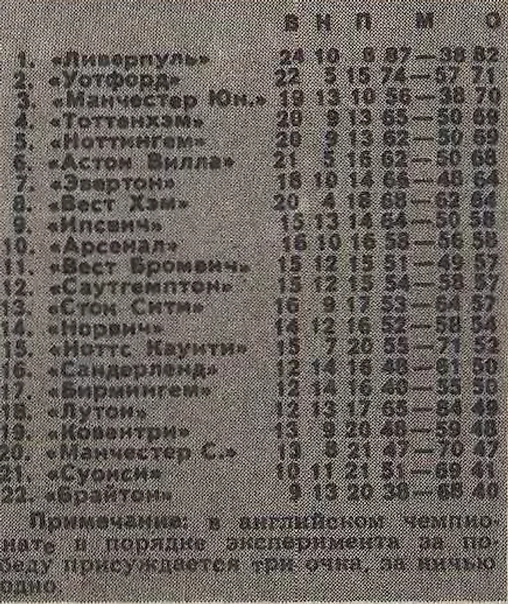 "Уотфорд" занял второе место и это стало главным событием в сезоне. "Ливерпуль" победил слишком безапелляционно, за месяц до финиша чемпионата. Сборная Англии, которую возглавляет Бобби Робсон, пока не блещет, а в Кубке чемпионов английская гегемония закончилась уже в четвертьфинале - "Астон Вилла" была разбита "Ювентусом" Росси, Платини и Бонека, а "Ливерпуль" ничего не смог поделать с польским "Видзевом".