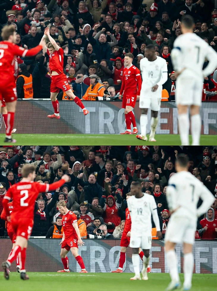 Вот и очередная игра сборной Португалии, в составе которой продолжает пылить Криштиану Роналду, не обошелся без огненного сюжета. Выезд в Копенгаген с надеждой продолжить борьбу за трофей обернулся поражением от сборной Дании. Единственный гол в матче был забит в самой концовке – сделал это один из главных мемов сезона, нападающий «МЮ» Расмус Хейлунд.