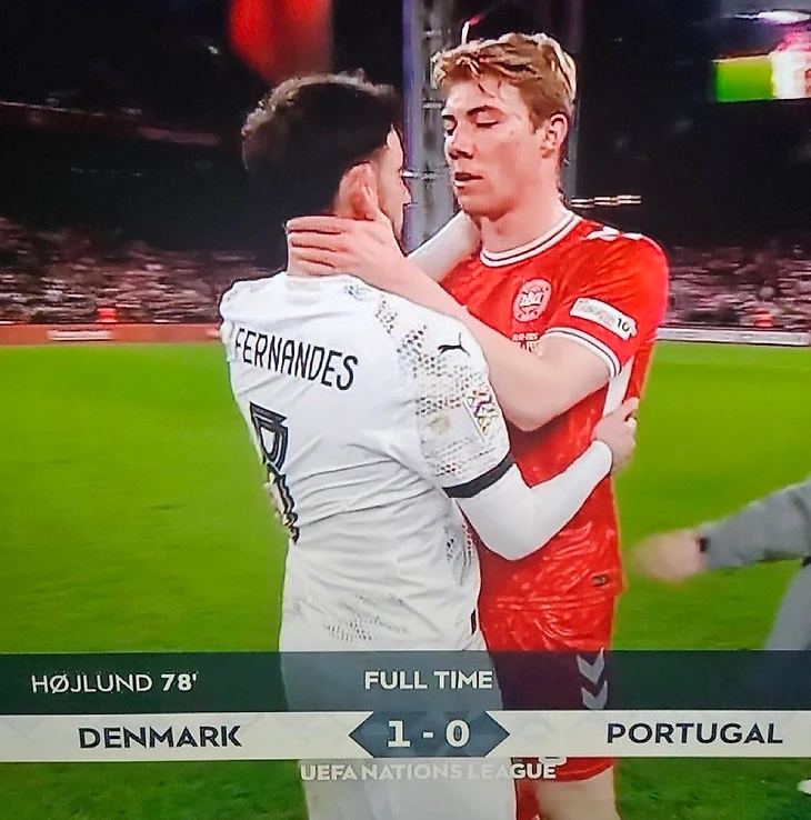 Датчанин, ранее не забивавший в течение 21-го матча, теперь делает это вторую встречу подряд: в минувшее воскресенье он огорчил «Лестер». Кстати, с передачи Бруну Фернандеша, сборную которого сегодня приблизил к вылету. Что, впрочем, не помешало им после финального свистка очень мило пообщаться.