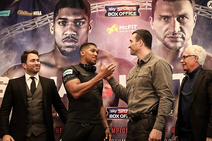 Вчера вечером по нашему времени украинский супертяжеловес Владимир Кличко встретился лицом к лицу со своим будущим оппонентом, чемпионом IBF/IBO в супертяжёлом весе из Великой Британии Энтони Джошуа.