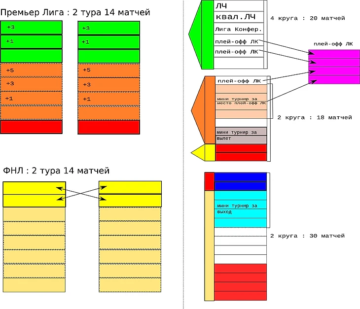 немного странный момент, но мне нравится, что уже после первого этапа 2 команды из ФНЛ поднимутся наверх, а 2 из Премьер Лиги пойдут вниз - ИМХО плюс. Да, тем, кто из Премьер Лиги вылетит - будет немного странно и обидно, но ИМХО это хорошо против команд однодневок (Тосно, Урал и т.п.), да и вылет тоже, получается, всего на пол сезона