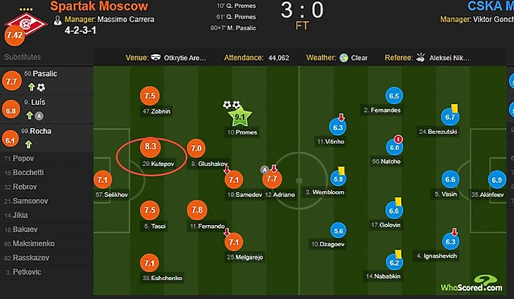 День тяжёлый, мысли сбиваются. Дерби вообще тяжело оценивать. И выделяя лучших в этот день, старайтесь никого не записать в плохие. Ни один игрок сегодня не заслужил плохих слов. И даже тяжёлый Фернандо, который просто тупо плохо играет на морозе, даже когда забивает мячи, сегодня делал важнейшие перехваты и выходы из обороны в атаку. То есть то, что и должен делать. Не с той интенсивностью, что вы хотели? Это ваши проблемы.