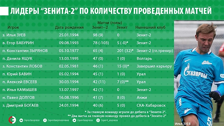 Лидеры "Зенита-2" по количеству проведенных матчей. Фото "СЭ"