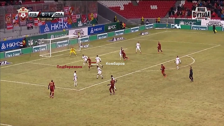 Что длинные передачи «Спартака» - прихоть Карреры, говорит первый гол: мяч в штрафную из центра поля загрузил Максимович. Перед голевой погрузкой мяча к чужим воротам был похожий эпизод, в котором серб, не видя продолжения атаки, отправил мяч Александру Селихову. Каррера тут же высказал защитнику, что так делать не следует, замахав руками в направлении штрафной площади - туда направляй, туда.