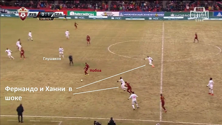 На 29-й минуте Глушаков оказался в пяти метрах от Нобоа. Фернандо и Ханни в унисон недоуменно кинули взгляд на капитана. Денис в это время стоял в центре поля и тер руки - подмерз.