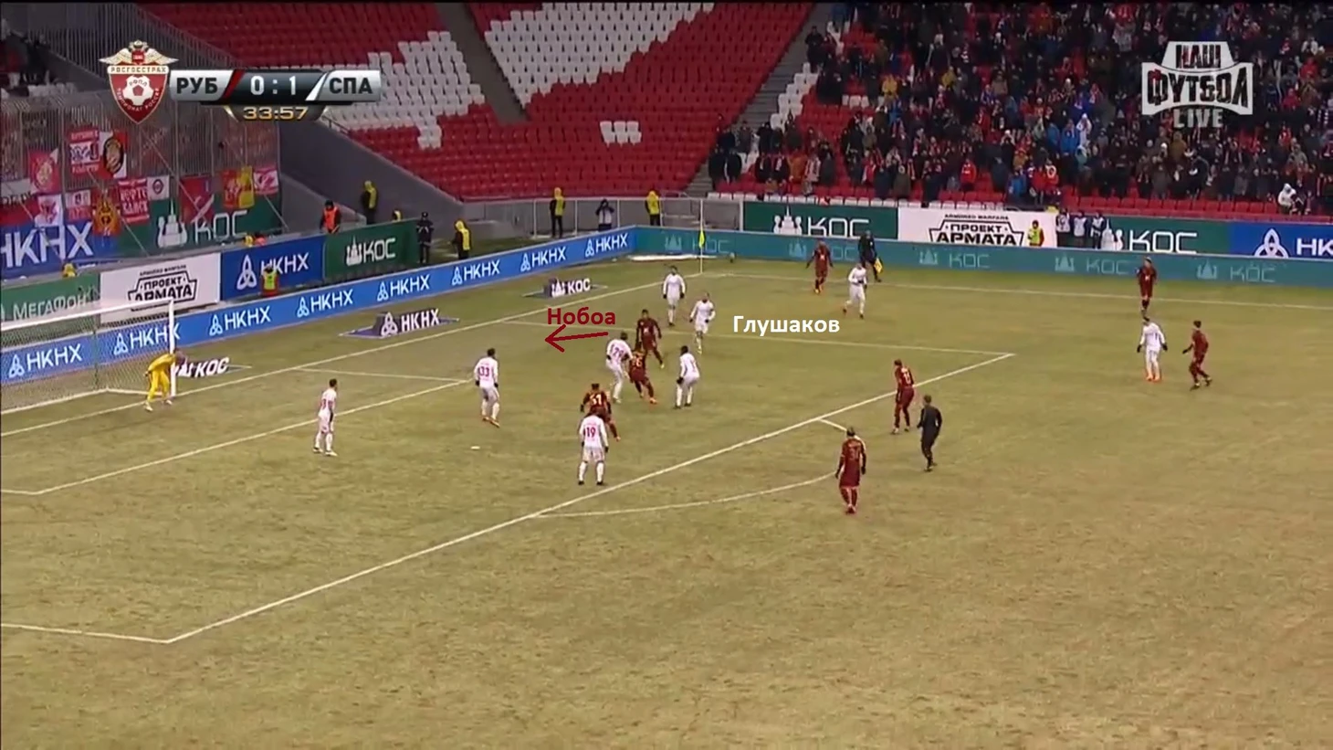 На 34-й минуте Глушаков находился рядом с Нобоа, но в последний момент упустил его и позволил пробить.