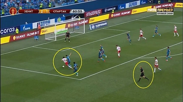 Неоднозначных ситуаций в матче было столько, что все даже трудно перечислить. Но были и ситуации абсолютно бесспорные, с которыми соглашаются даже очень доброжелательные к "Зениту" эксперты, - это два пенальти на спартаковце Соболеве. В начале первого тайма при 0:0 и во втором тайме, когда молодого спартаковского форварда просто ударил рукой в лицо зенитовец Барриос: однозначный пенальти и, кстати, вторая желтая карточка с последующим удалением для колумбийского легионера "Зенита".