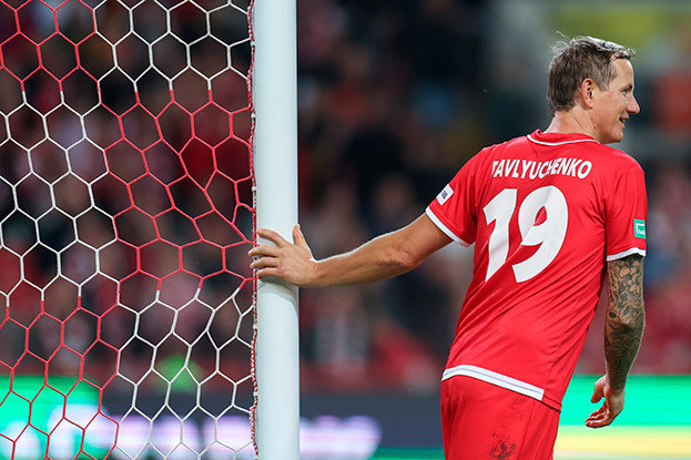 Глядел на то, как его преемник в роли капитана красно-белых Андрей Тихонов, как рукой, накидывал мяч на голову Роману Павлюченко перед вторым голом. Со своего левого фланга, но с правой ноги.