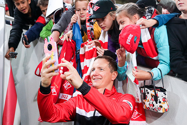 Или заботливость Романа Павлюченко, который увидел, что один из детей, жаждавших его автографа, уронил блокнот на землю, после чего поднял его и расписался.