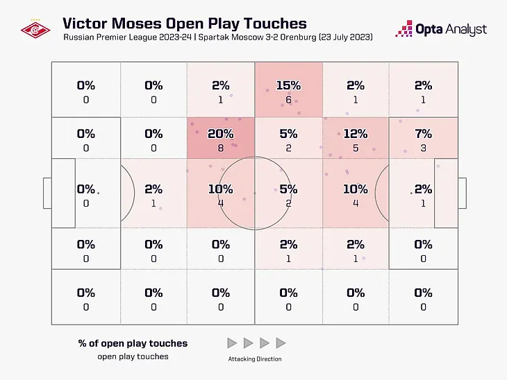 Автор SM_77 ⚽️ Карта касаний Виктора Мозеса в матче с «Оренбургом»