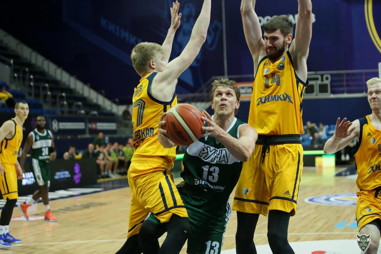 Часто ли в баскетболе играют три овертайма? Ответ только на данный вопрос позволяет отнести эту игру к числу самых запоминающихся в сезоне. 55 минут искрометного, напряжённого и равного баскетбола. «Викингам» на протяжении всей встречи пришлось бороться с разными трудностями - на разминке подвернул голеностоп Хаджибекович, Лазарев и Грущенко быстро перебрали с фолами, после трёх четвертей хозяева ведут «+7»...Перед заключительной десятиминуткой тренерский штаб нашёл нужные слова, и «бело-зеленые» по-спортивному завелись - Спрюилл, бравший, казалось бы, чересчур много инициативы на себя в атаке, смог в решающий момент реализовать два трехочковых броска, один из которых даже вывел гостей вперёд! Впрочем, реализовавший штрафной «гигант» Десятников перевёл игру в овертайм. В середине первого дополнительного периода пятый фол получает Грущенко, и нашей команде пришлось доигрывать маленькой пятеркой с Поляковым на позиции «центра». 87:87 после первого овертайма, 95:95 после второго... Эта игра дарила разные эмоции болельщикам - хоязева дважды были близки к победе, но неминуемо пропускали решающие очки от Спрюилла. В третей пятиминутке Поляков и Князев штрафными создали комфортные «+4» за две минуты до конца, но Вольхин и Ахмедов сумели забить сложнейшие мячи в концовке, набрав 13(!) очков на двоих и принеся победу «Химкам». Обиднешее поражение, которое надолго останется в памяти болельщиков «Руны», но винить команду после такой битвы не поворачивается язык.