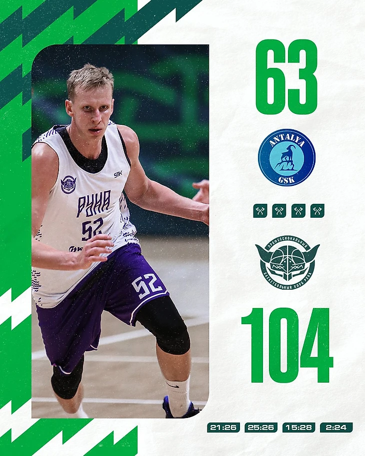 Затем «Руна» обыграла еще один клуб второй турецкой лиги «Анталья Гюнеши». Москвичи уступали после первой четверти игры (21:26), но собрались и довели встречу до разгромной победы – 104:63.