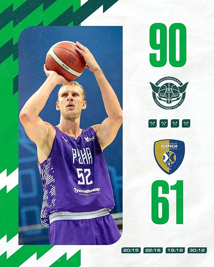 В заключительном матче турнира викинги сыграли против «Химок». Наши парни уверенно действовали на обеих сторонах площадки и лидировали по ходу всей встречи. В четвёртой четверти «Руна» не оставила шансов сопернику и довела матч до разгромной победы – 90:61.