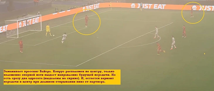 Манера Свилара позволяет стягивать соперника в экстремальный прессинг и, при наличии правильной структуры, помогать созданию численного равенства в центральной зоне или на чужой половине.  На скрине выше, развитие игры продолжится через ближнего игрока. Ниже примеры из игры с «Аталантой» где желанным адресатом станет нападающий.