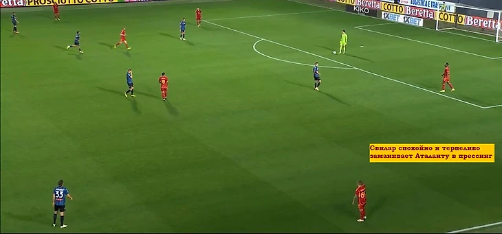 Здесь Свилар не изменяет себе – уверен и терпелив с мячом. Положение корпуса позволяет развивать игру в любом направлении. «Аталанта» действует по персональным ориентировкам – именно с этой фишкой бергамасков планирует заигрывать Свилар.