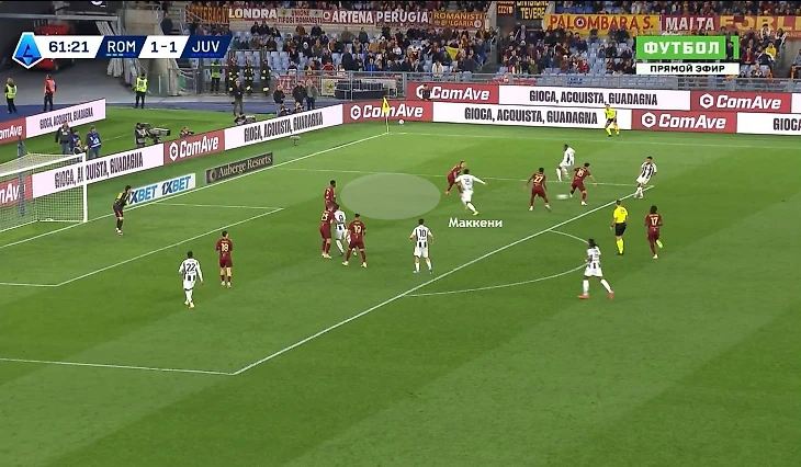 1)Тренер римлян сместил акценты на контроль игры заменами на 61-й минуте. Вместо Кристанте и ЭЛШ, вышли Паредес и (неожиданно) Гурна-Дуат. «Рома» перешла на 5-3-2.