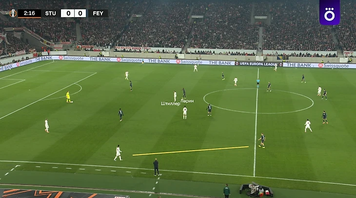 Трудности игрокам «Штутгарта» создавали ротации тройки Тимбер-Ларин-Валенте в центре поля. Если Тимбер поднимался выше, ближе к Ларину, то у соперника возникали проблемы – игроки терялись, не понимая кто за кого отвечает.