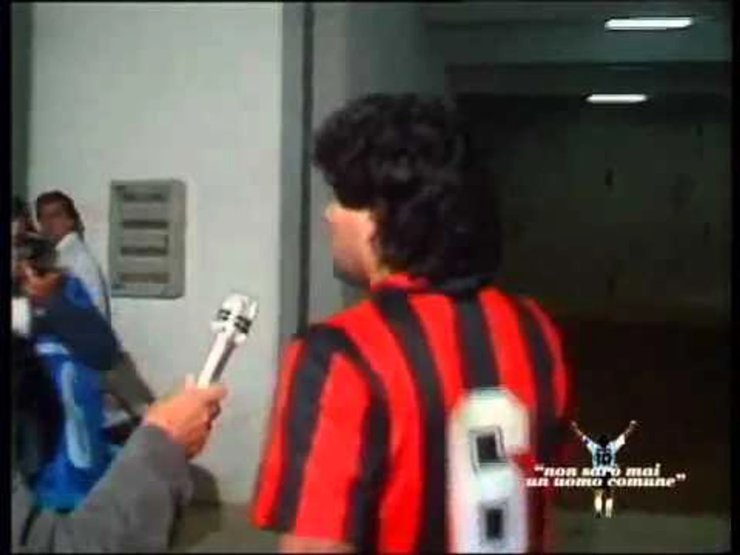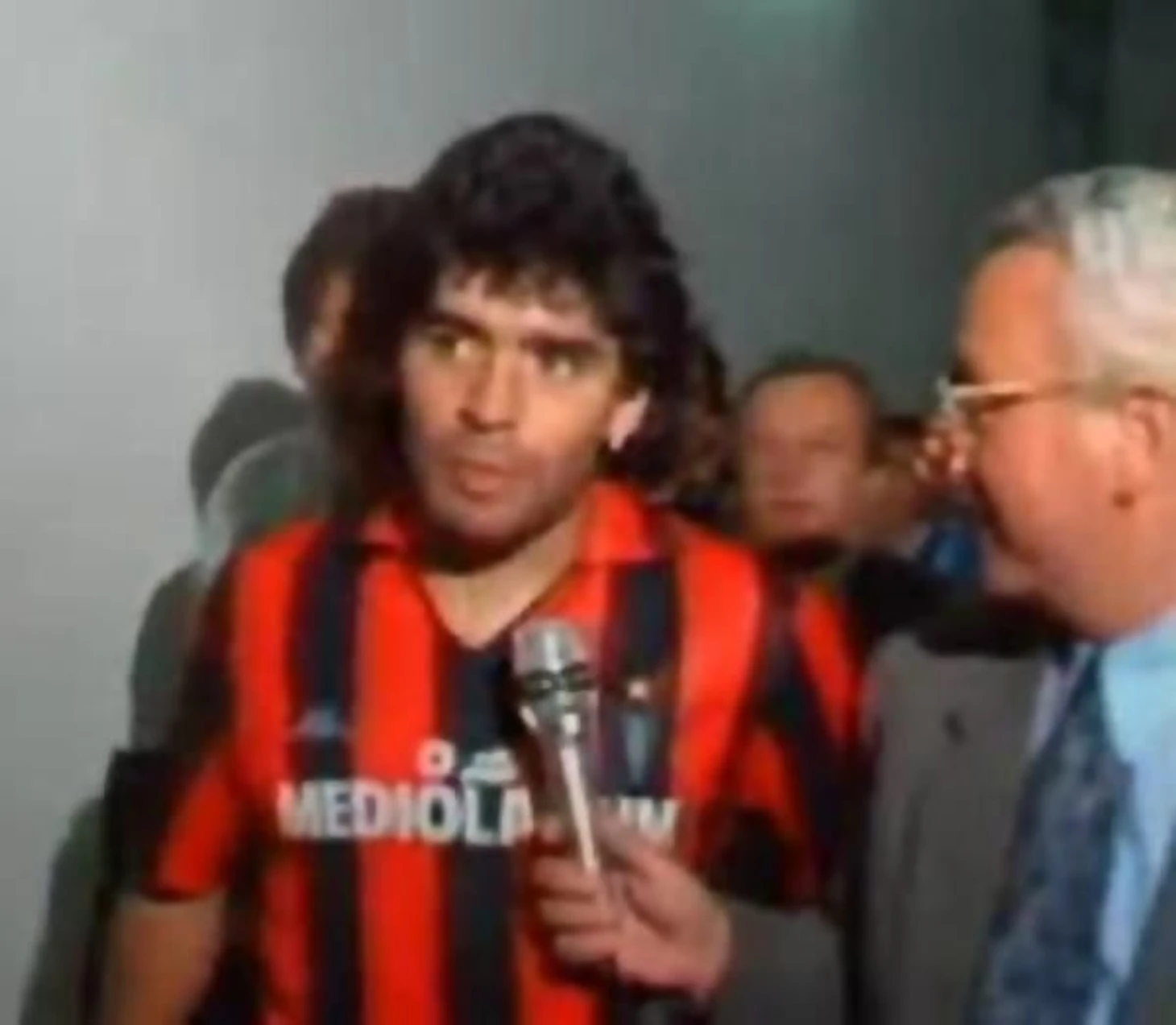 После очередной баталии Диего Армандо убегал от камер в футболке Франко Барези. май 1989 г.