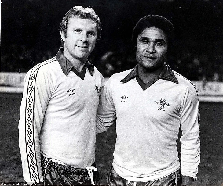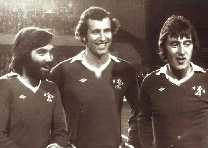 В ноябре 1975 г. легенда МЮ Джордж Бест примерил майку Челси в матче, посвященному легенде Челси Питеру Осгуду (в центре).