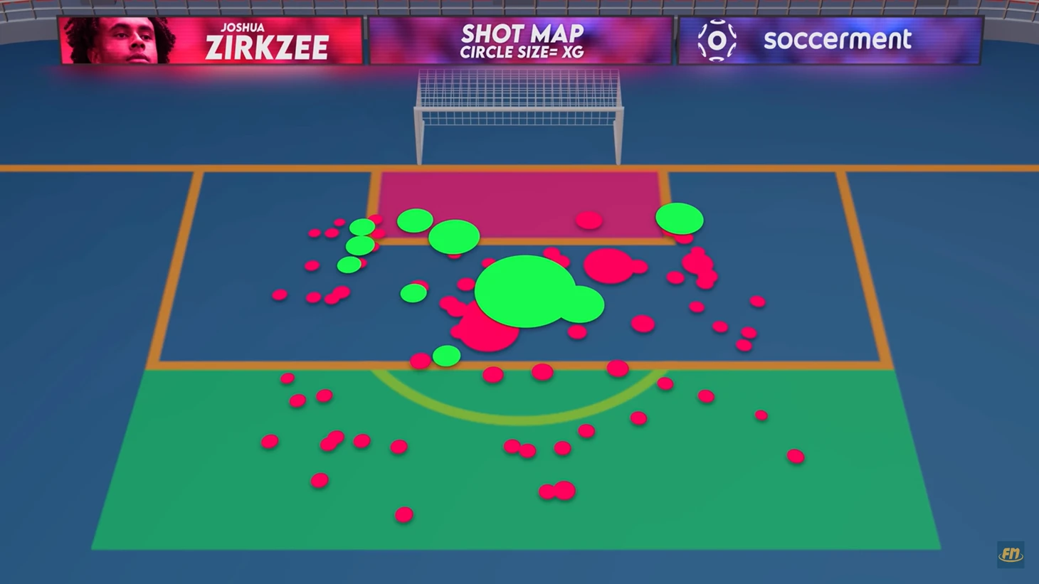 Учитывая роль Зиркзе в построении атаки и подыгрыше, он не всегда оказывается на оптимальной позиции в стадии завершения. Несомненно, врывания в штрафную вторым темпом в матчах за «Болонью» стали его визитной карточкой, однако, если мы посмотрим на карту его ударов, можно заметить некоторые закономерности.
