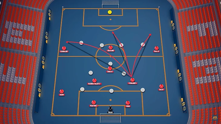 Плюсом подобной игровой системы может быть и игра на контратаках - основном способе создания моментов футболистами «МЮ» в прошлом сезоне. При перехватах мяча Зиркзе и Фернандеш могут оперативно выводить вингеров на чужую половину поля.
