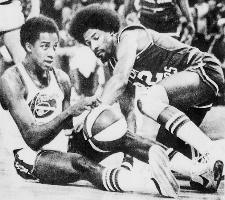 1976. Выигрывает звание Лучшему новичку АБА, бросает вызов Доку на Конкурсе бросков сверху, выводит «Денвер» в финальную серию и повышает авторитет своего клуба достаточно, чтобы его приняли в НБА вместо «Кентукки».