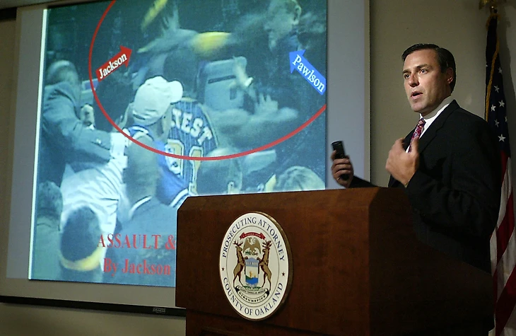 Баскетбол в НБА порой бывает очень физически жестким и в лиге есть достаточно парней, готовых помахать кулаками в случае чего. Но речь не только об игроках. В ходе каждой своей игры я замечал на трибунах арены безмозглых болванов, у которых чешутся руки до драки. Игроки болельщики постоянно во время игры перебрасываются разными репликами. Это часть шоу. Но иногда игроки теряют терпение, не сдерживаются и принимают приглашение помериться силами с фанатами. Именно это и произошло 19 ноября 2004 года на арене «Пэлас оф Оберн-Хиллс».