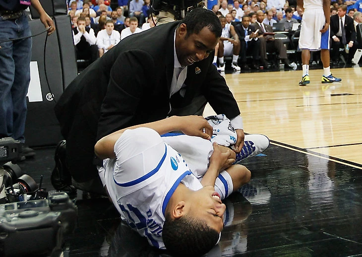 Известный тренер Тим Гровер, работавший с Джорданом, Уэйдом и Брайантом (а также написавший самую странную книгу, что я читал за последний год-два) считает, что в травматизме игроков виновата чрезмерное увлечение молодых баскетболистов тренажерным залом. Детишки начинают качаться все раньше, но при этом еще толком не умеют двигаться, прыгать, приземляться и падать.