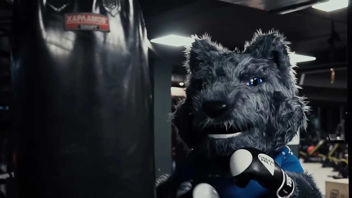 Маскот «Тамбова» вышел на пробежку под легендарную Gonna Fly Now Билла Конти – музыку, под которую бегал сам Рокки Бальбоа. Бегает волк, конечно же, по Тамбову.
