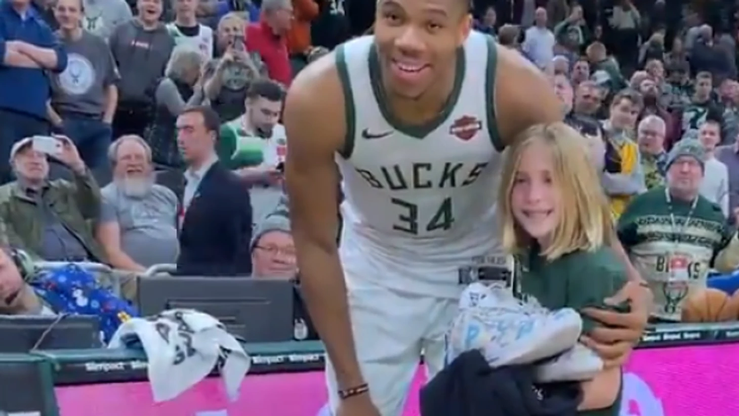 Яннис – лучший Санта! Подарил болельщице игровые кроссовки – она расплакалась от счастья