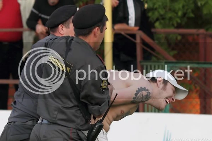 Лишившись этих двоих игроков, в коридорах гости больше не прыгали. Под занавес первого тайма игра переросла в потасовки где-то в середине поля. Второй тайм начался в том же ключе, но внезапно выбежавший на поле болельщик «красно-белых» немного остудил своим появлением игру.