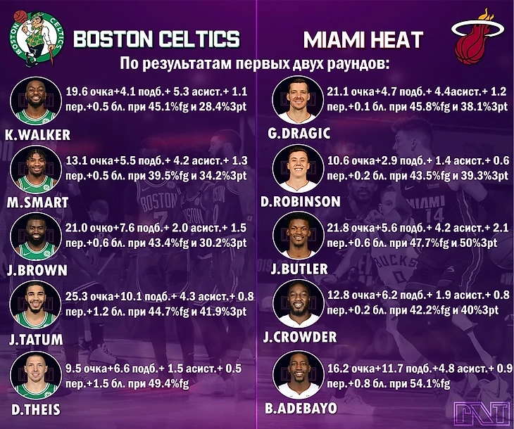 -) По результатам игр плейофф к этой серии лучшим игроком обеих команд подходит Джейсон Тэйтум и с таким «two-way» игроком, при наличии такого скилл-сета в нападении, Майами пока что просто не встречались.